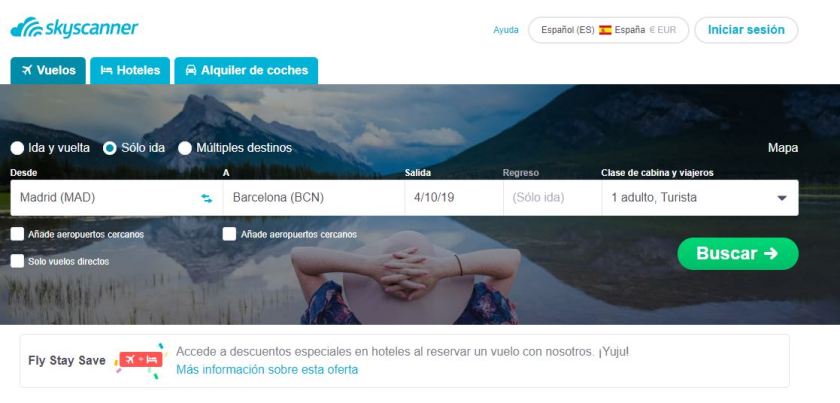 Skyscanner es un buscador de vuelos, hoteles y alquiler de coches, que compara los precios de las distintas aerolíneas, agencias de viajes, agencias de hoteles y distintos proveedores para que puedas verificar en la misma pantalla todos los precios, y no tengas que buscar en todas los sites los distintos precios que ofrecen, pudiendo elegir el precio más económico del mismo producto.